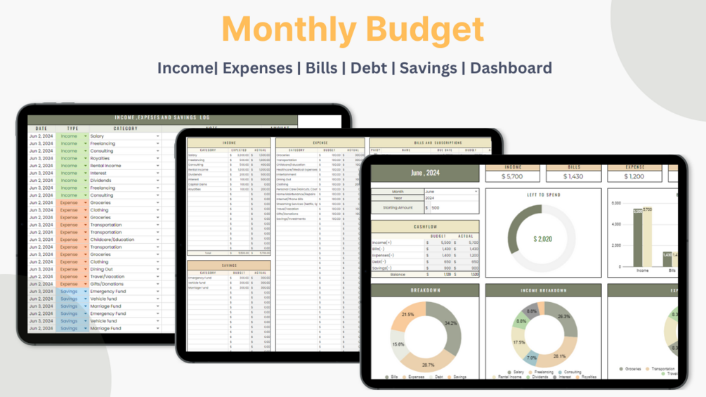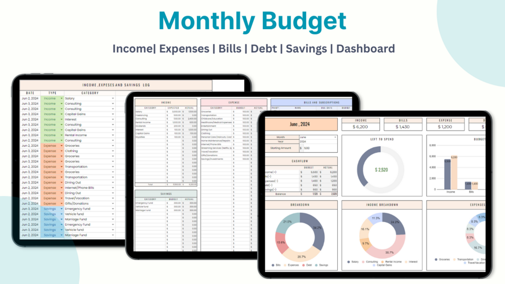 Master Your Finances: Monthly Budget | Google Sheets | Income, Bills, Expenses, Debts and Savings
