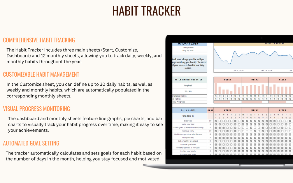 Habit Tracker| Dashboard | 12 Monthly Sheets | Google Sheets