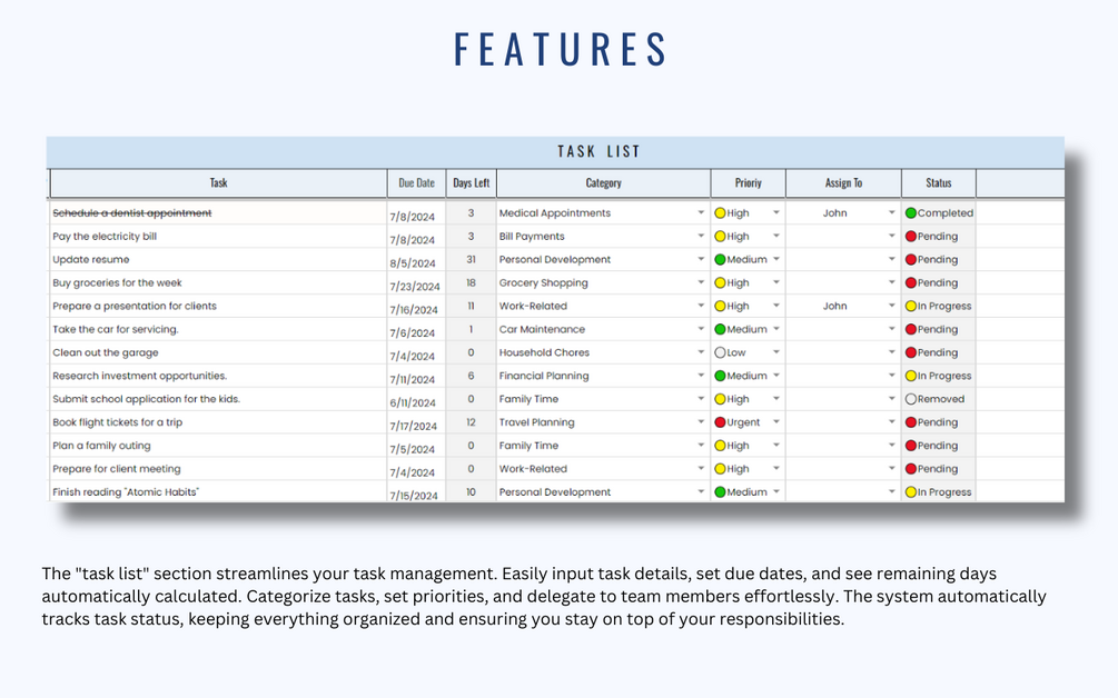 - A dedicated sheet that helps you keep track of all your tasks in one convenient place.